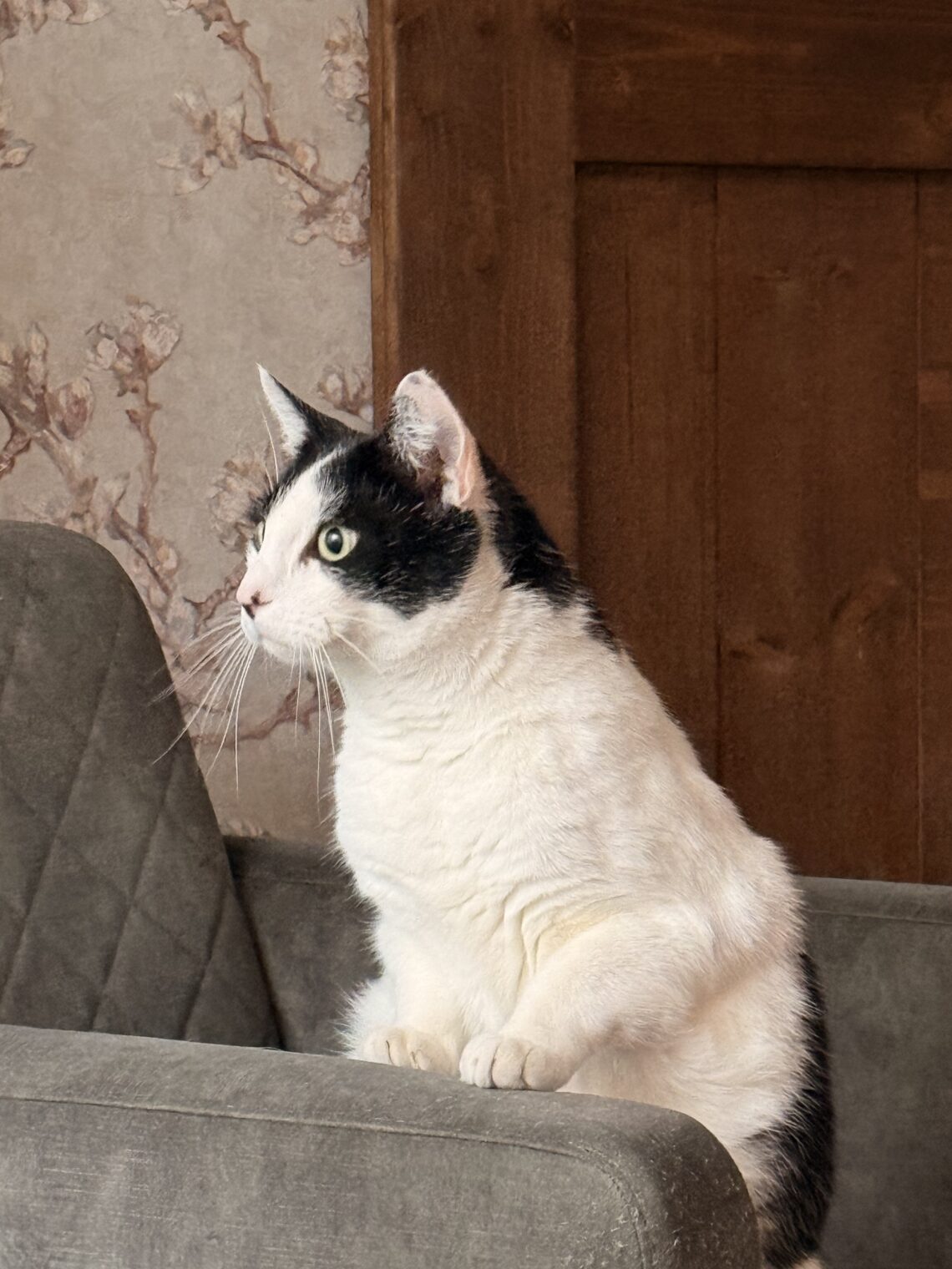 Ik kom met m’n rolstoel, koffer en streetjet thuis en zie Bailey, mijn jongste kat, in een staat van “aan” staan. Grote ogen, beetje laag bij de grond en enorm alert. Hij kijkt naar het raam alsof de Kerstman er opeens staat. Ik zie met een vluchtige en toch ook wel teleurgestelde blik dat dit geenzins het geval is, haal vervolgens mijn koffer van de rolstoel af en besluit naar boven te gaan. Het is pyjama/badjas tijd met een kopje thee en de laatste aflevering van Ainsley McGregor Mysteries on the side. Nadat ik me heb omgekleed kom ik de kamer binnenlopen en zie Bailey nog steeds in dezelfde houding…